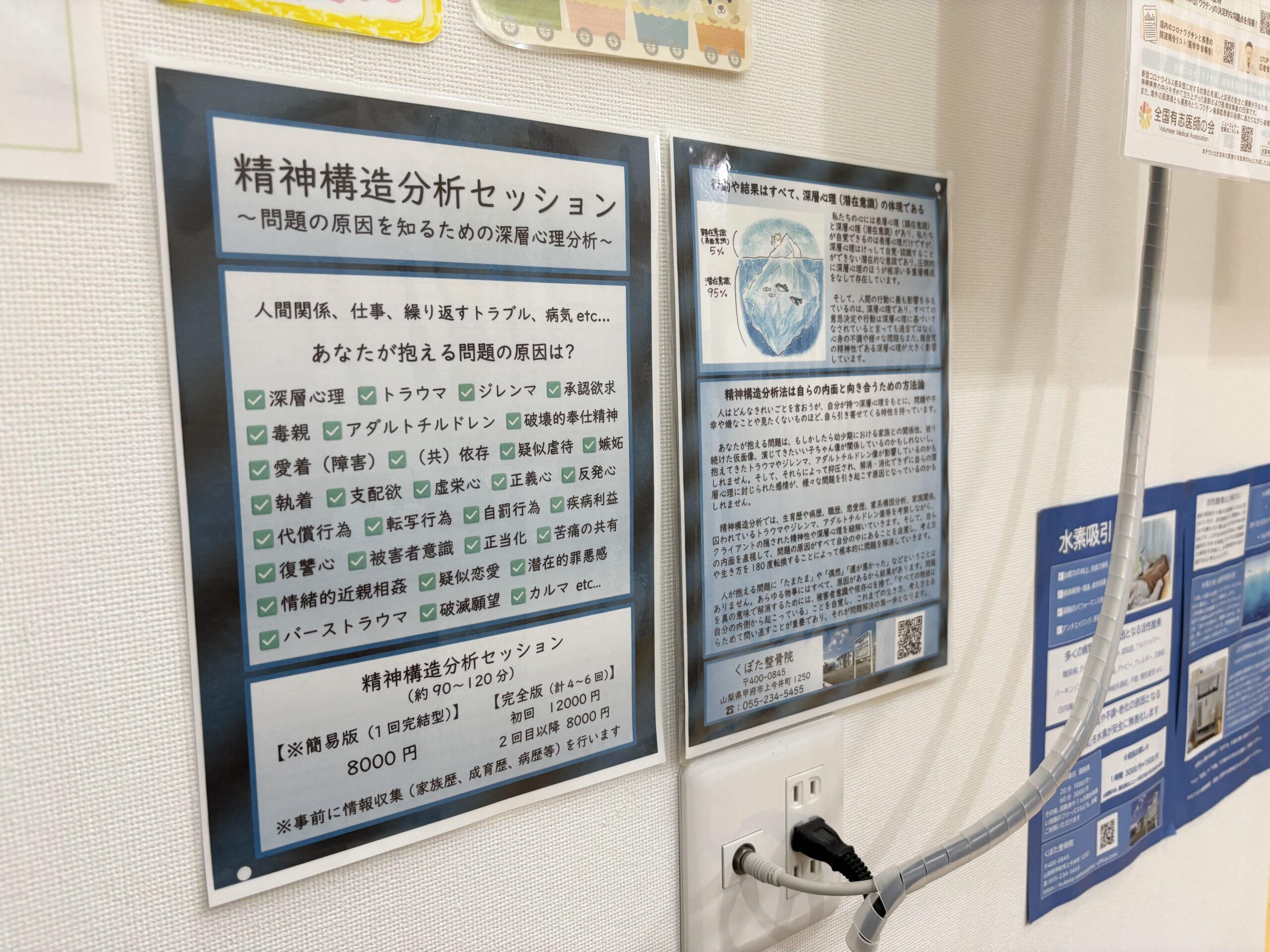 くぼた整骨院の待合室には、精神構造分析セッションのPOPが貼られていたり、