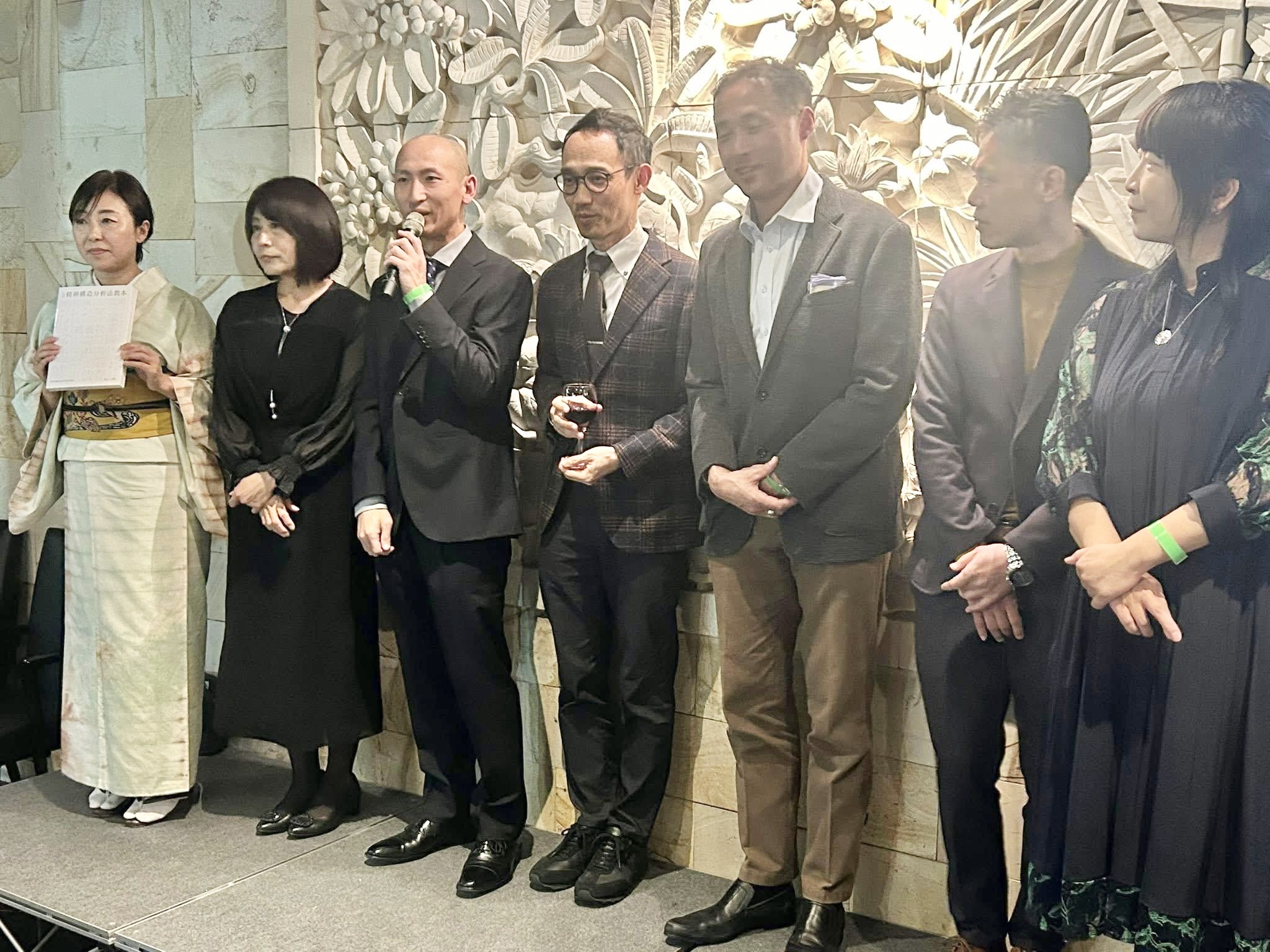 そして、パーティーも中盤に差し掛かったところで、12月1日にいよいよ出版&販売開始となる〈公式〉精神構造分析法教本の紹介をしていただき、僕も執筆者として登壇させていただきました。